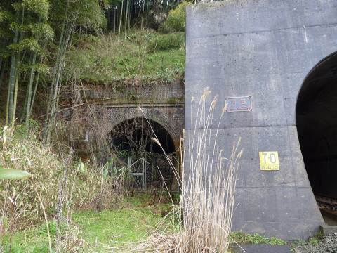 その橋梁からちょっと西側に進むと、すぐに現行路線の トンネルが口を開けている場所に辿り着きます。 ![]() 現行児野トンネル。延長322mだそうです。 |