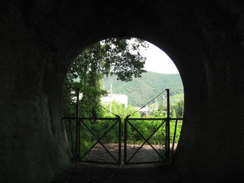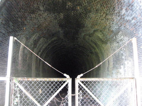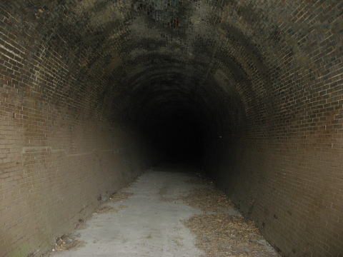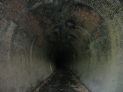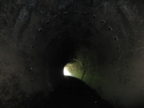 洞内のアーチはフル煉瓦仕様です。 路面はコンクリート化しており、従来の姿は失われ ています。 |
