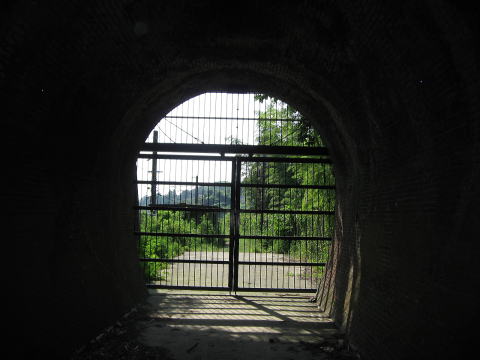 大阪側の坑口まで辿り着きました。 当然ですが、固く閉ざされています。 |