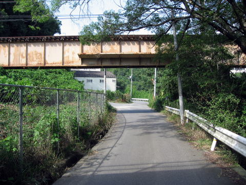 とにもかくにも坑門の素晴らしさは分かりましたが、 厚い鉄格子で中までは確認できません。 というわけで反対側に廻ってきました。 このプレートガータの橋げたは、現役大和路線のも のであり、右側は大和川、左手が当然芝山トンネル のある方向です。 |