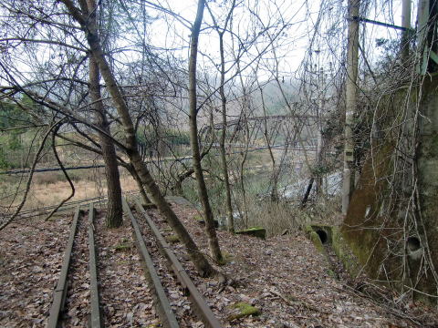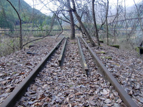 橋梁は撤去されたのにここだけ残るレール。 廃線後に訪れるマニアの為としか思えません(違う でしょw) |
