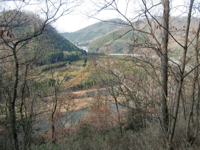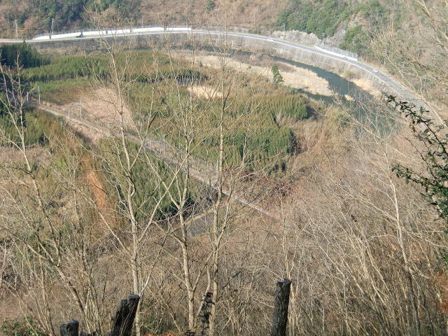 ![]() レールから県道と桂川を挟んで対岸。 見えますか、あの遥か彼方にあるあの築堤。。。 |