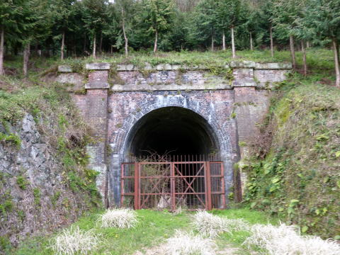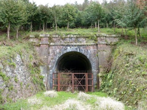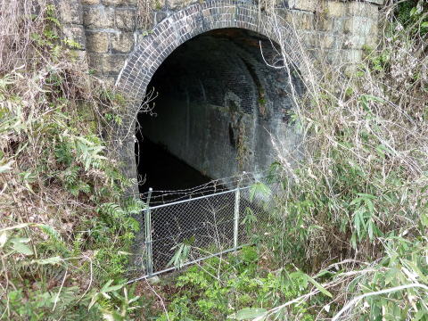 さて坑門です。かなりしっかり造り込まれている印象で す。ピラスターに笠石帯石を備えて、煉瓦中心の構成で 造られています。 この路線唯一のトンネルということで、相当気合が入っ ていたのではないでしょうか。 |
