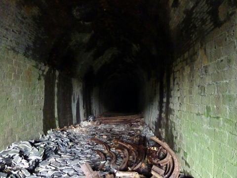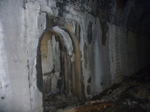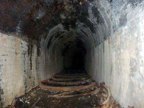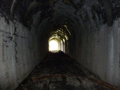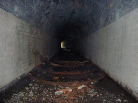 内部です。。。 結構瓦礫が溜まっています。煉瓦アーチも湿っぽく、 少し不気味な印象を受けます。。。 |