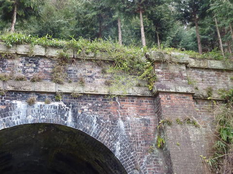 紀勢本線の旧トンネルには要石があったので、それよ りも装飾は少ないですが、それでもきっちりとした造り込 みを感じます。 迫石の巻厚は4層です。 |