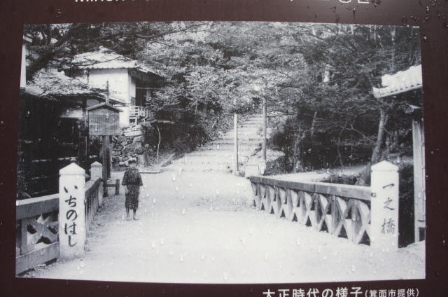 まずは箕面滝道が箕面川を渡る場所にある 橋梁。 ![]() ![]() その名も「一の橋」昭和57年3月竣功 どうやら改修済みのようです。 |