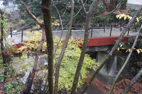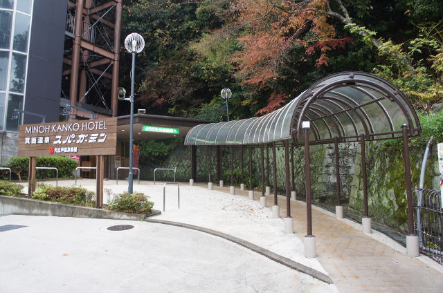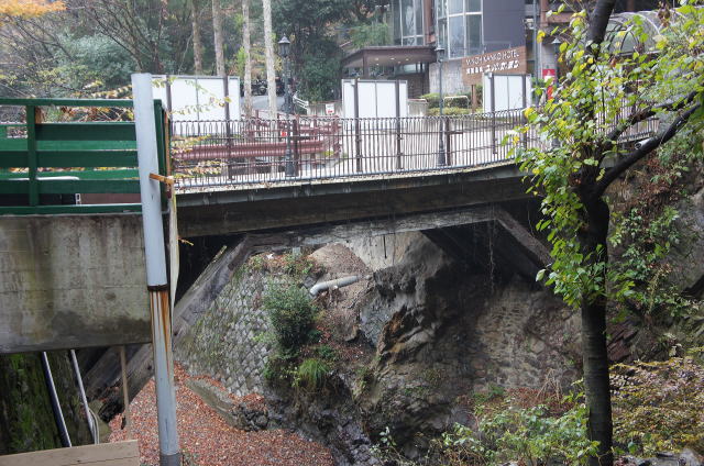 ![]() 蓬莱橋に代わり現在の玄関である箕面川橋 奥に展望エレベーターが見えています。 そして橋の左手に、いいモノが。 |
