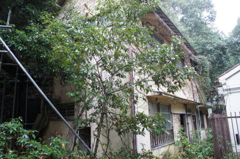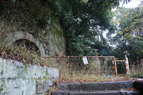 ![]() さて、そろそろ主目的の物件にアプローチしましょうか。 1つ目の物件のアプローチは、廃物件にも関わらず容易です。右手の擁壁に隙間がありますよね…そこに… |