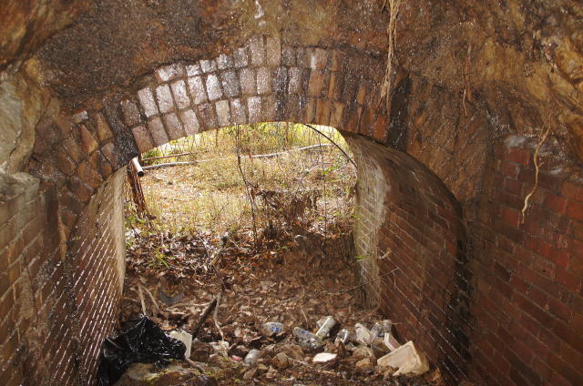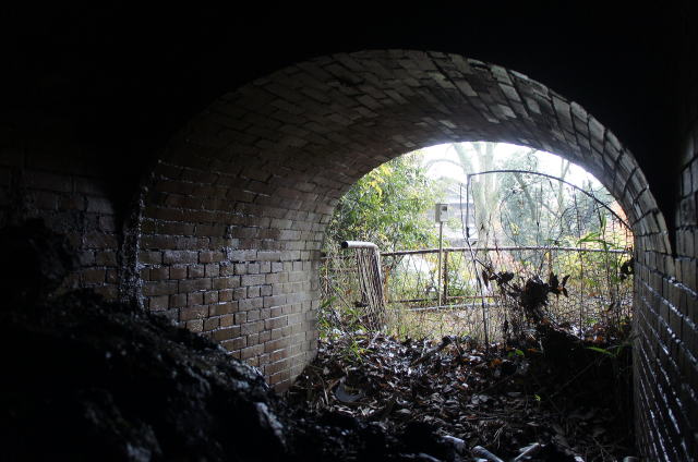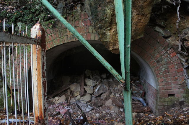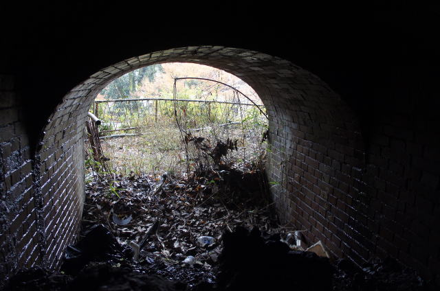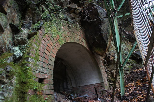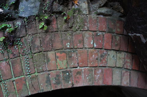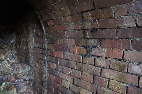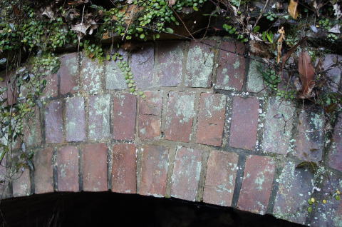 穿った穴に綺麗に煉瓦を積んでいます。 何故わざわざ煉瓦アーチにしたんでしょうかねえ。 |