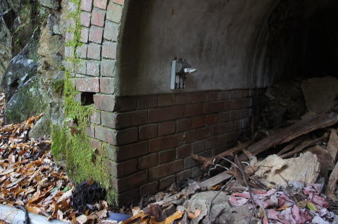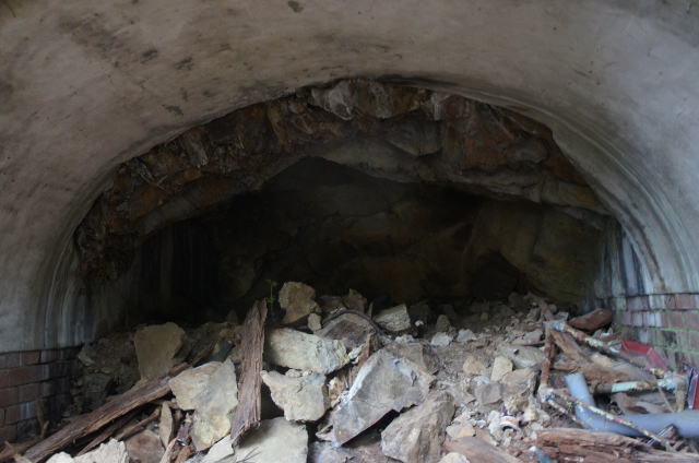 ![]() 煉瓦アーチ部分は僅かで、すぐに煉瓦側壁のみとなり、そして岩盤素掘りで終点となります。 距離にしても5mもないぐらいの狭いものです。 しかし煉瓦アーチの寝床とは贅沢ですね〜 |