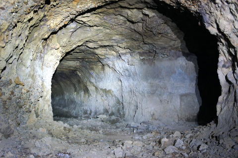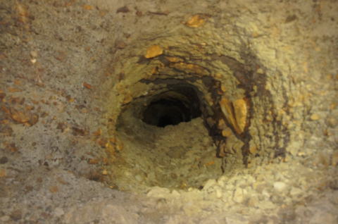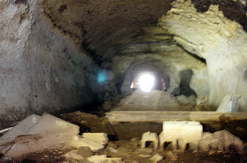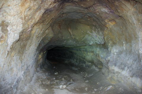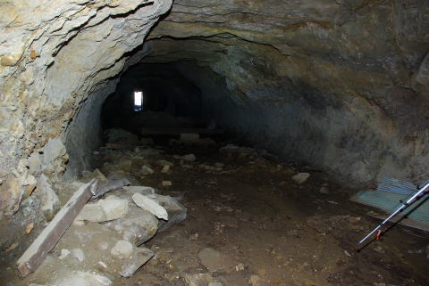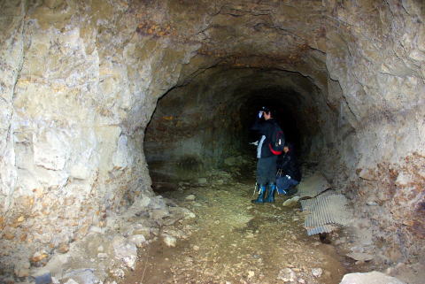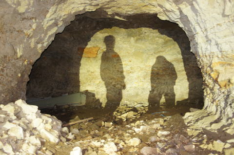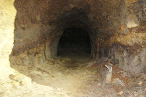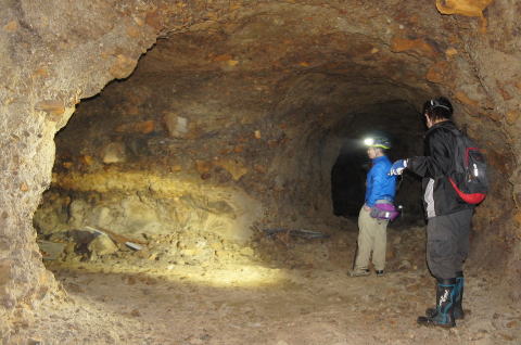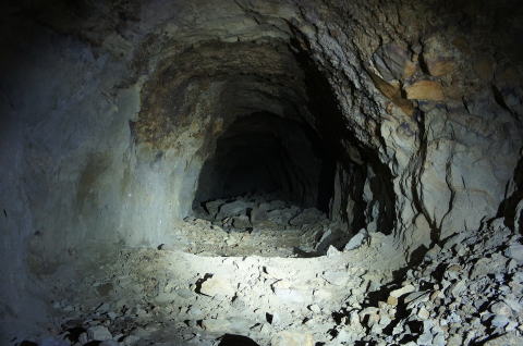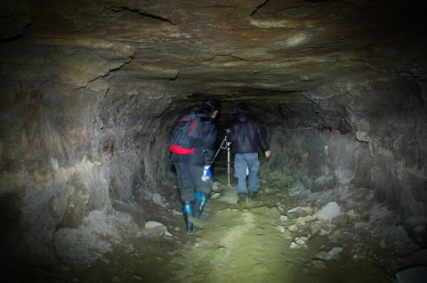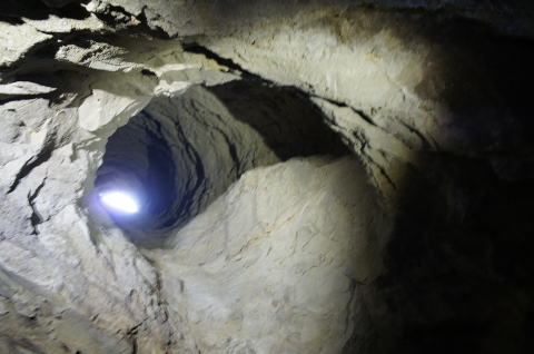 さらに東進! 今度は右手に横坑発見! どうもこの北15西坑は横坑が十字路では 繋がらず、段違いになっています。 これは何か理由があるのでしょうか。 (写真提供:おろろん氏) |