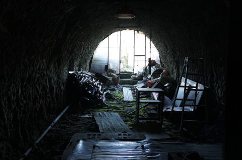 北14西坑に繋がる横坑。 やっぱり半分埋まっています。北14西坑から 見た景色と同様ですな。 |