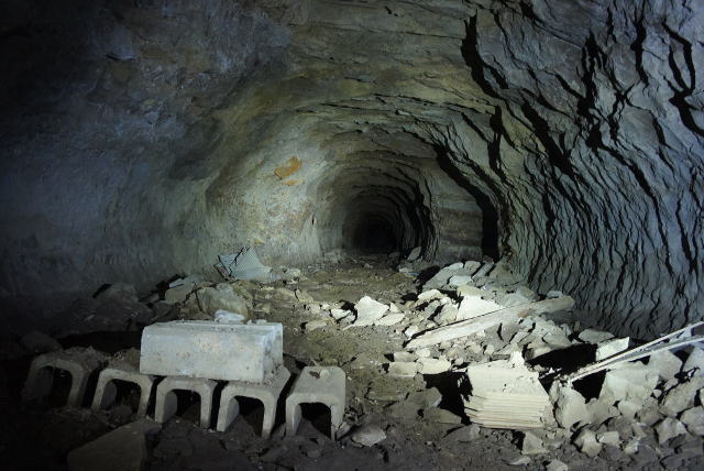 瓦礫と廃材が詰まって歩きにくい。。。 謎の坑口まであと少し。。。 |