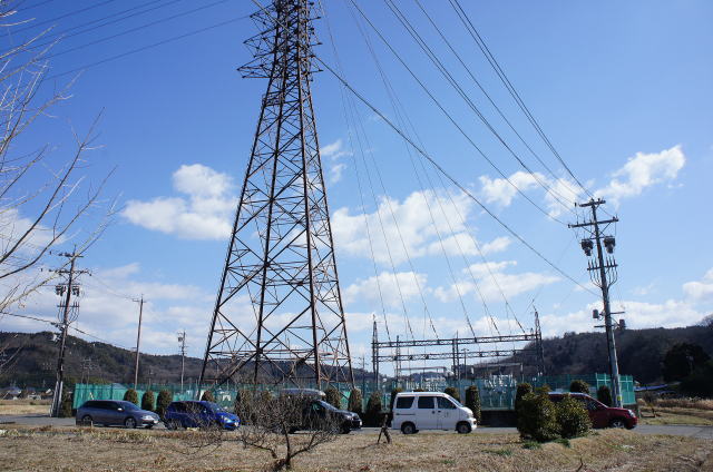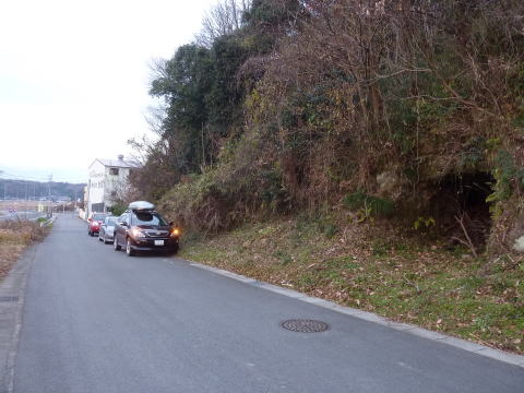 変電所に車を停めて、この道を南方向に進み ます。そうしますと、道沿いに穴があるある ある。。。 (車はここには駐車しておりません。) |