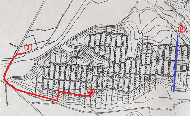 結論から! 後程外から確認しに行きました! 位置的には公園の上の斜面ですかね。それ 以上はちょっと。。。 一応鉄条網で囲われていた形跡はありまし た。 |
