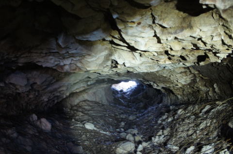 むむ!?反対側の光がすぐそこに。。。? なんなんだここは。頭低い〜 完全に中腰でないと入れません。。。 |