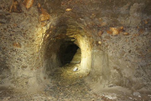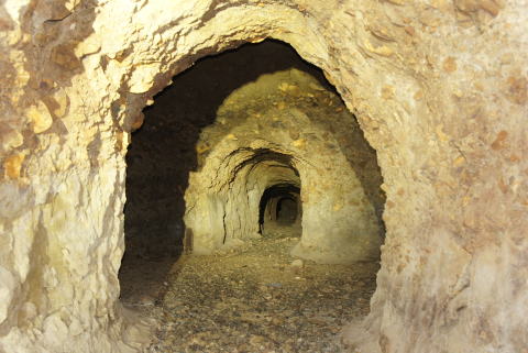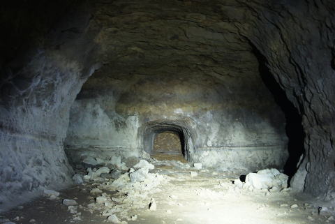 東側から西側坑口方面を見てみると。。。 途中で狭まっているのが分かりますな。 どうもこっち側から開削途中だったようです な。 |