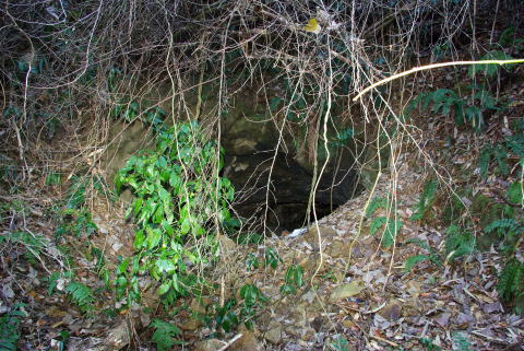 で、この穴の右側にも2,3個穴を確認できて いますので、北16西坑以北にて開口している ものと目されます。 で、左手は南に向かって谷筋になっており、 北13坑〜北15坑を東西に分断させる要因に なっていると考えられます。 (写真提供:おろろん氏) |
