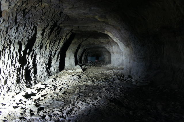 東側の坑口に向かう坑道です。いつもより やや大き目ですねえ。 |