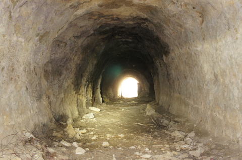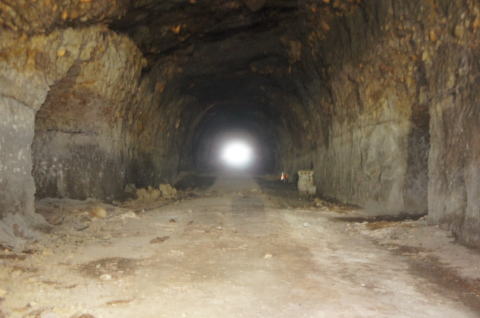 向かって左側。北側の坑口です。 まだまだ先が見えませんなあ。 |