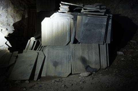 んんんん? なんだこりゃ? 瓦っぽいと思ったけど何か違いますねえ。 明らかに戦後のブツですな。 何かをしようとしていたんでしょう。 |