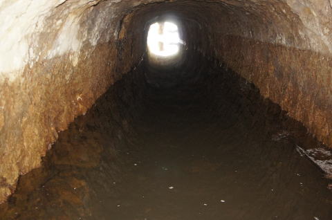 北20坑の西側坑口方面は。。。 おおお。。。こちらも水没しとります。 コンクリートブロックで意図的に堰き止めて いるような。。。? (写真提供:おろろん氏) |