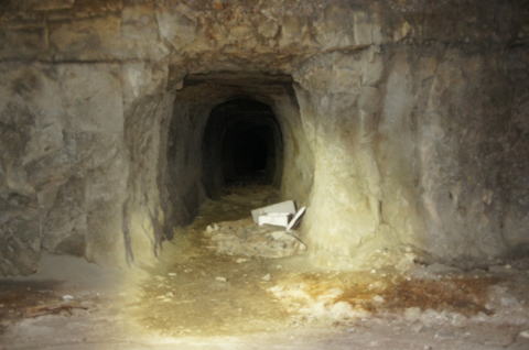 一方右側は北、北21坑方面です。 発泡スチロールの箱が見えます。 まだまだこの横坑は深いよ! |