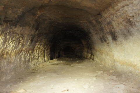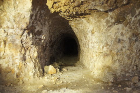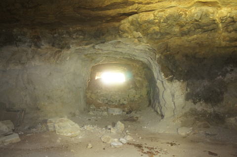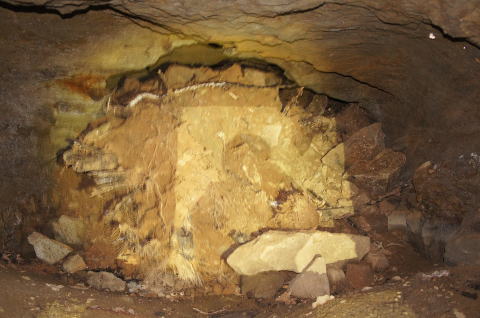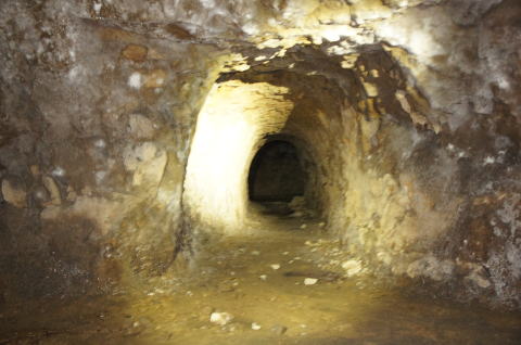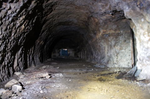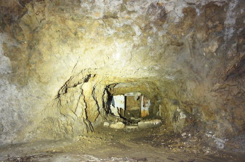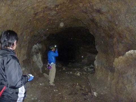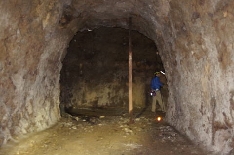 うーむ、掘りかけ!です。 ダイナマイト充填穴も見られますんで、ここ は外に貫通させる予定だったのかもしれませ ん。 |