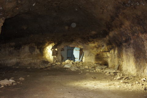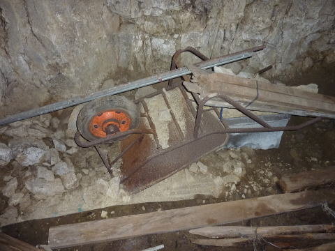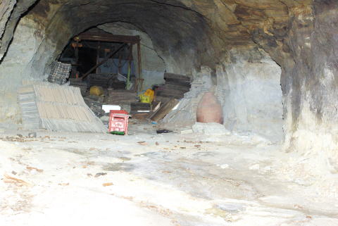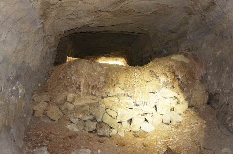 石積みから向こう側。 しっかり開口していますねえ。入口付近には 私物もだいぶ残されています。 |