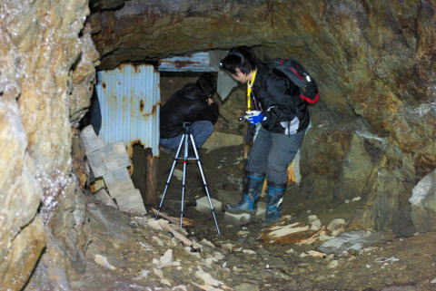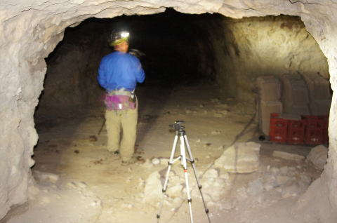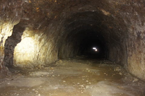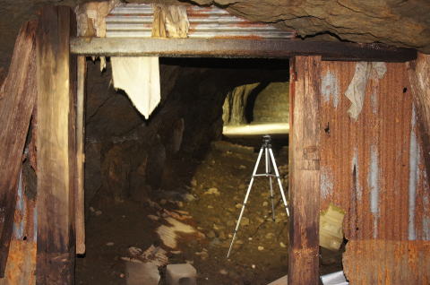 そして北23坑から24坑へ! ちとフラッシュがきついですな。。。 。。。で、何か正面にちっこい穴が? |