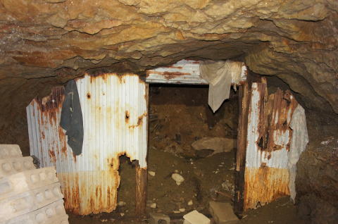 私物?満載の北21、22坑西側横坑でした が、お隣の北23坑に移ると一気になくなりま す。 そして、恐らく北24坑で遂に長い長い横坑 が終わり、丁字路になっているようです。 まずは北23坑の西側坑口の確認を致しま しょう。 |