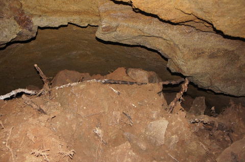 木の根などが混ざった土砂ですんで、明ら かに外から詰め込まれたものであることが 分かります。 |