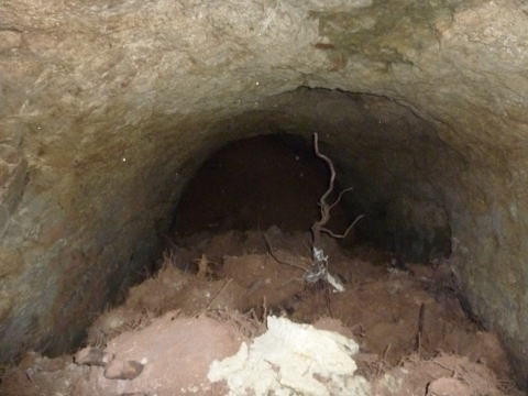振り返り。 ここはどうでしょう。位置的に、珍しい北側 坑口への坑道だったのでしょうか。 |