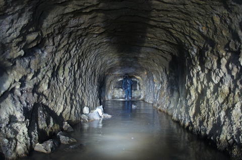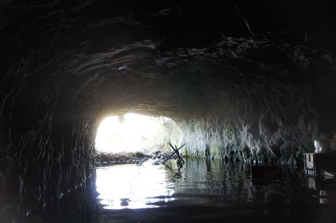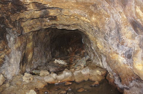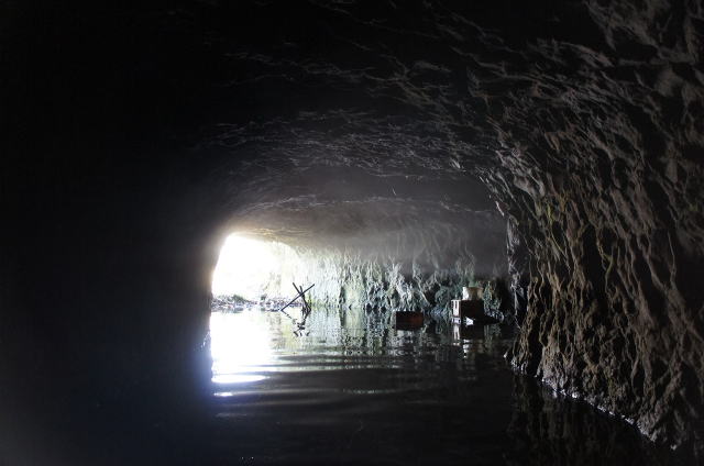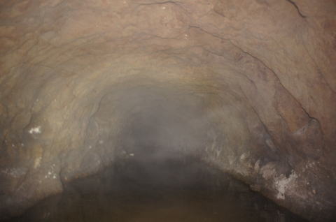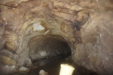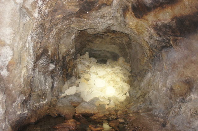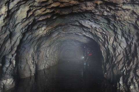 瓦礫の上から振り返り。 少々の水没ですが、洞内は非常に安定し ている印象です。 |
