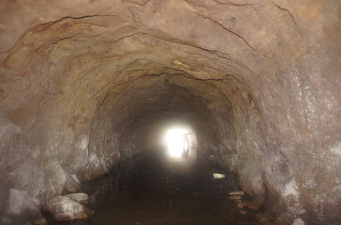 北7坑西側坑口です。 うーむ、水没しとる。。。しかしちゃんと長靴 装備です!楽勝! |