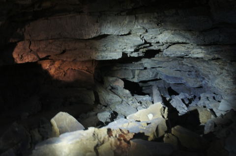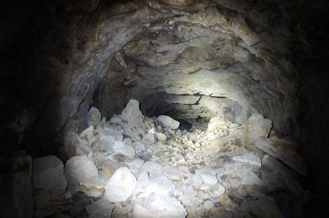 瓦礫は散乱しているものの、意外と洞内は 安定しています。 やっぱり洞内が崩れたことによる瓦礫では ないようですねえ。 |