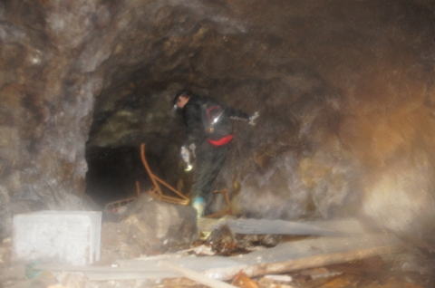 この瓦礫は天井から崩れた。。。というよ りは、周辺の落石をここにてっとり早く集め て押し込んだって感じですかね。。。 |