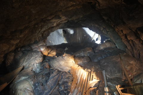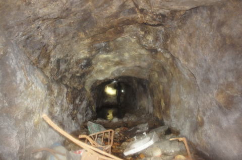 振り返りです。 北1坑の東側坑口方面の坑道って立場 でしょうか。 外からは想像もできないほど瓦礫が押し込 まれておりました。 |