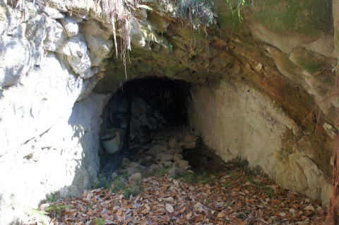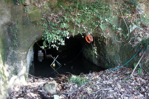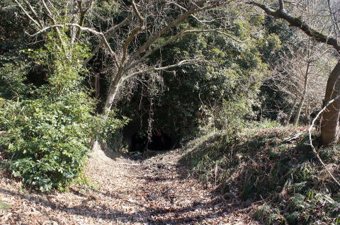 一見藪で覆われて坑口が見えませんが、 近寄れば綺麗な坑口がすぐに見えます。 |