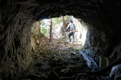 竹藪の中を彷徨ったのではありますが、 実は意外とアプローチ簡単な場所に北7坑 西側坑口は開いておりました。 ピカさんが挑みます。 |