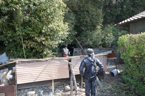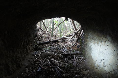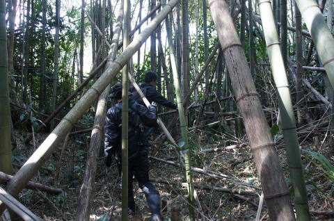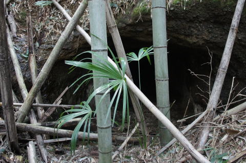 外から!って、ここは結構大変でした。。。 竹地帯をがさがさばきばき。。。 しかし!おお! 穴が見えた! |