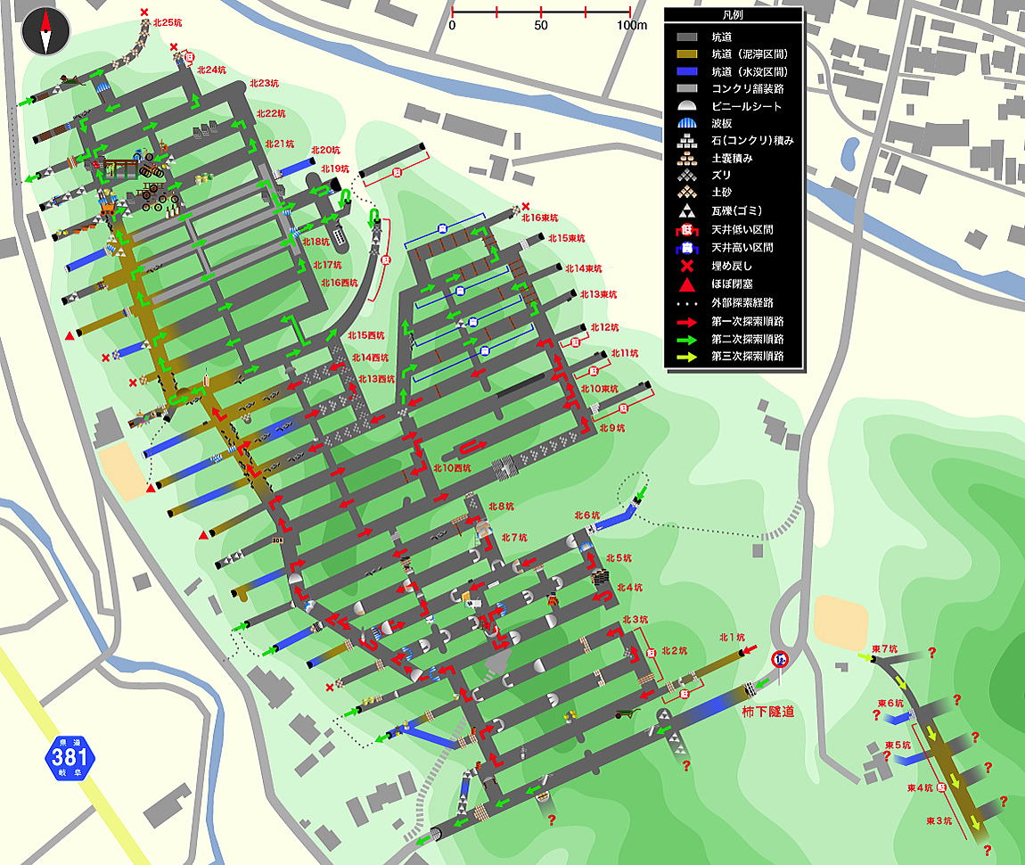 赤が計画図にない未知の坑道です。。。