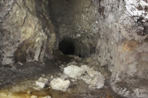 掘りかけから振り返り。 東1、2坑よりは掘り進めているようです な。 |