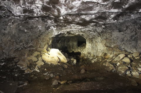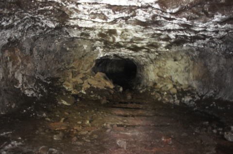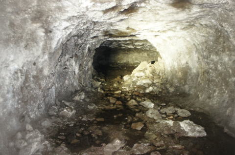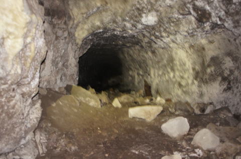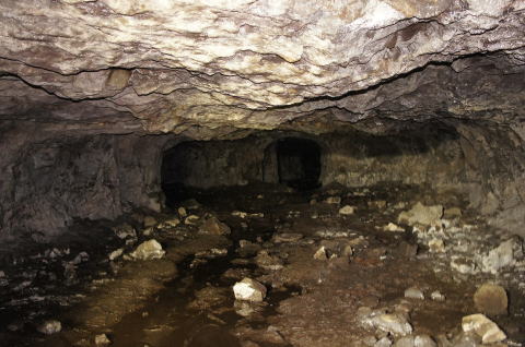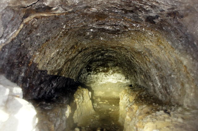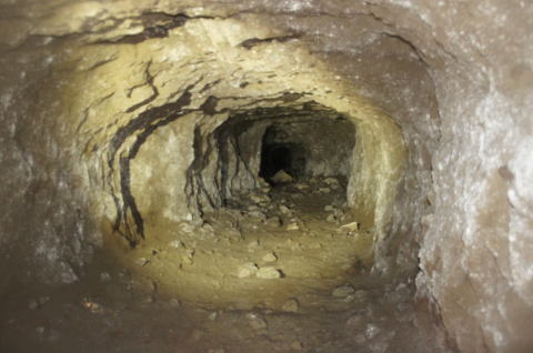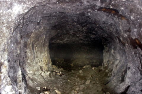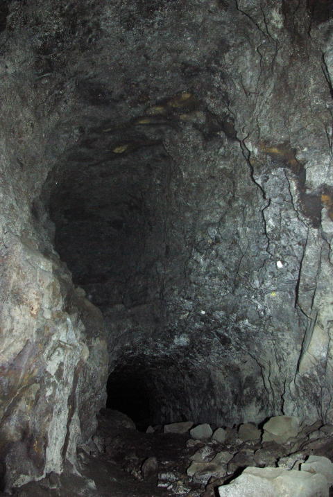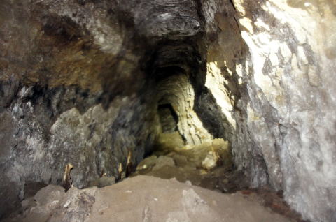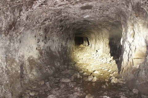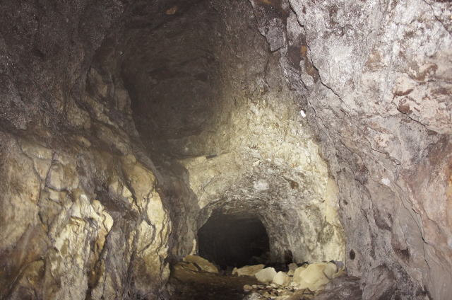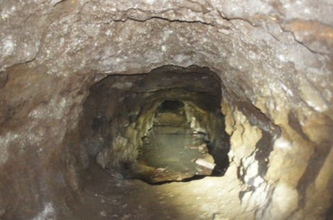下部の坑道は普通に歩けるサイズです。 手前の2段掘りがいかにでかい空間かっ てことですよねえ。 |