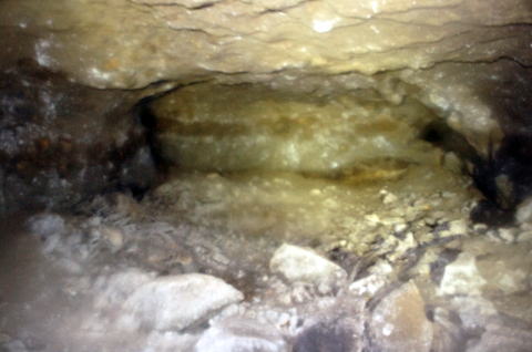 ずれた穴から先に進みます。 おお。。。水溜りが。。。 |