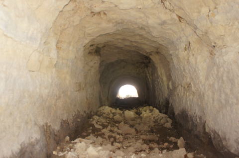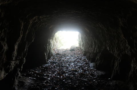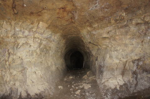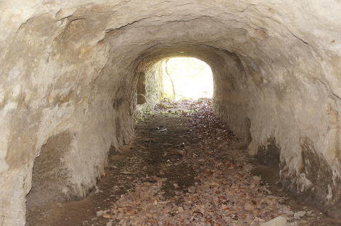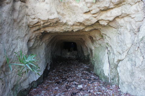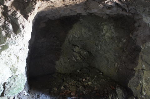これが外の道と繋げようとしていた 坑道と思われます。 計画図では左にも坑道を掘ろうとして いたように見受けられますが、実際には 痕跡は見当たりません。 |