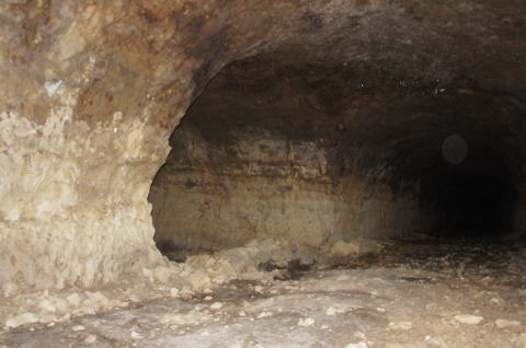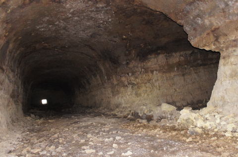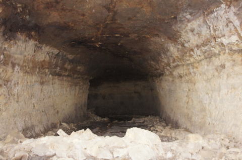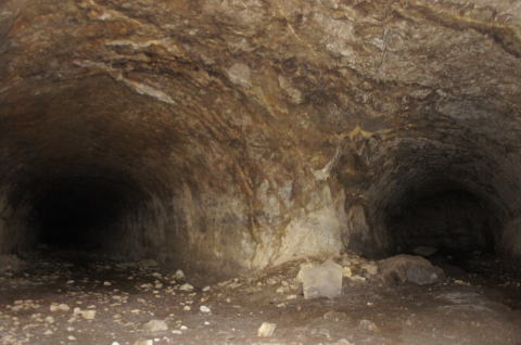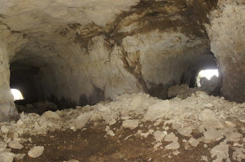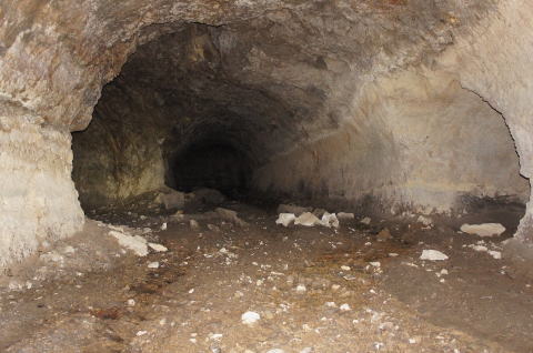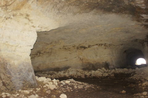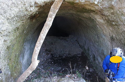 この西側横坑はでかいですな! 東側の横坑よりも断然でかい。これが 完成形なんでしょうねえ。 |