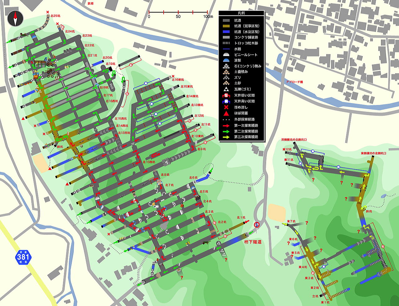 ![]() 今回は東12坑と東11坑を見ていきました。おおよそ計画図通りに穴があいていたように思われます。 ここはいつでも機材搬入可能だったのではないかな、と思われますが、路面のコンクリート施工や天井の配線設備等の遺構は見られませんでした。 さあああ。。。次回は東10坑方面です。東坑レポ、あと2、3回でおわれるかな。。。 以降、 その26 に続く! |