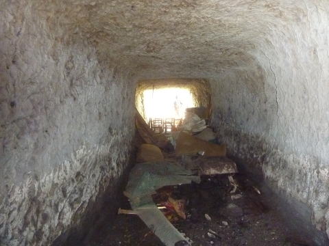 一段高い西側横坑? これは上を整形してから掘り下げる 予定だったのでしょうか。 場所によって掘る順番が前後して いる感じがします。 (写真提供:おろろん氏) |