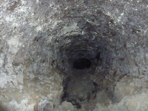 穴は窄まり、両端の掘削も消え去り ました。この辺はこれから上部の円形 を整形しつつあったようです。 そして、この先。。。 |